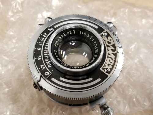 Hexar Ser.1 7.5cm F4.5を有楽町ダイヤモンドカメラで入手しました。中判カメラSEMI PEARL Apusのレンズ。レンズに珍しくヘリコイドが内蔵されています。 1938年のカメラのようです。 camerapedia.wikia.com マウント改造は、Hexar 7.5cm f4.5をM42ボディキ…