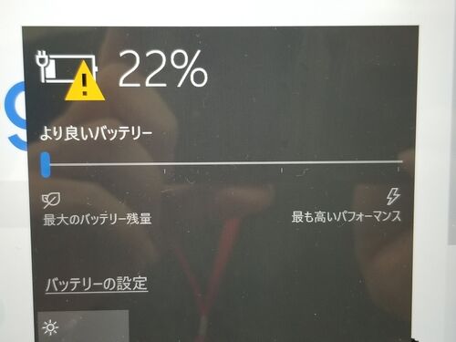 Surface Goを使っています。普段はACアダプターをさしっぱなしにしているのですが、何故かバッテリー残量が増えません。使っていて、減らないのですが、増えないんです。ACを外して、モバイルで使う度に、バッテリーが減っていくので、だんだん危ない残量に…