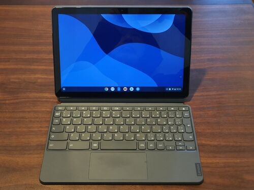 Lenovo Ideapad Duet Chromebookをお借りしています。写真で紹介します。 Surfaceスタイルのキックスタンドです。 背面のキックスタンドは、ファブリック素材のキックスタンド付きマグネットカバーとなっています。 キーボードはマグネットで固定。 タブレッ…