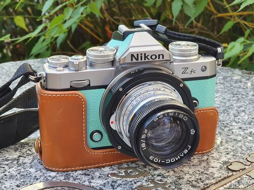NIKON Z fcで旧コンタックスマウントJupiter-12 35mm F2.8を使ってみました。後玉が巨大なレンズですが、干渉せずにマウントできました。