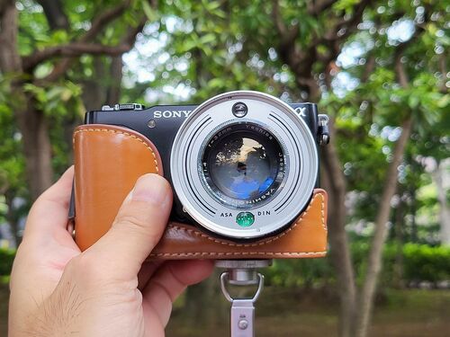 改造レンズYSHINON-DX 32mm F1.4を使っています。絞りの形が菱形になっています。