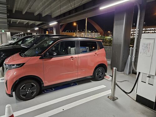 羽田空港P3駐車場のEV充電機器。駐車場代はかかりますが、急速充電30分無料。1階に充電機器が2台分あります。