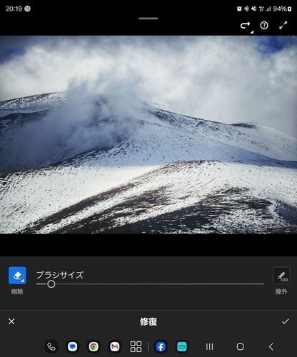 Galaxy Z Fold5のAdobe Lightroom for Samsung: Photo Editorにて、センサーのゴミを修復ツールで除去中。 スマホで写真編集ができるので、便利な時代です。