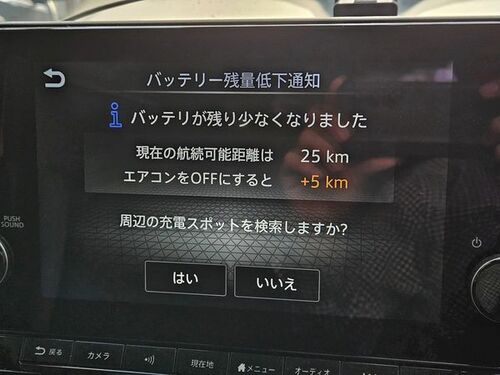 日産サクラ。バッテリー残量が減ってくると、猛暑なのにエアコンをオフにしろ、と苦渋の選択を迫ります。 自宅到着時にバッテリー残量11%、走行可能距離16kmとギリギリな状況でした。 今晩は暑いせいか、200V普通充電中にファンがずっと回っています。充電中…