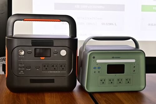 ポータブル電源YOSHINO B1200 SST発表会。 1000Whのポータブル電源で世界最小クラス。三元固体電池を搭載して、長寿命で安全。アプリでWifi, Bluetooth経由で管理。充電はAC充電は1000Wで70分、太陽光は400W最大。重量11kg。 出力はAC100V/20A×4(100V1200W、…