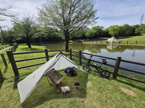 ミニベロDAHON K9Xでデイキャンプ。 30LリュックのKULA30にパッキング。ワンポールテントLanshan1のフライシートをタープ代わりに使用。 K9Xのフロントキャリアに30Lリュックは載るので、リアにシュラフを搭載できれば泊まりのキャンプで使えそうです。 3F U…