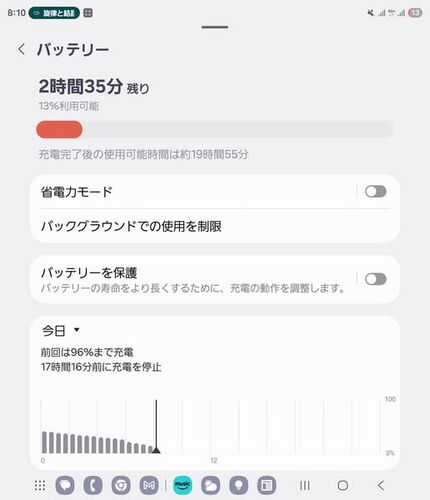 Galaxy Z Fold6。バッテリー残量13%で可動時間2時間30分。省電力モードにして3時間まで延ばしました。 【整備済み品】Samsung Galaxy Z Fold6 docomo 256GB シルバーシャドウ Samsung Amazon