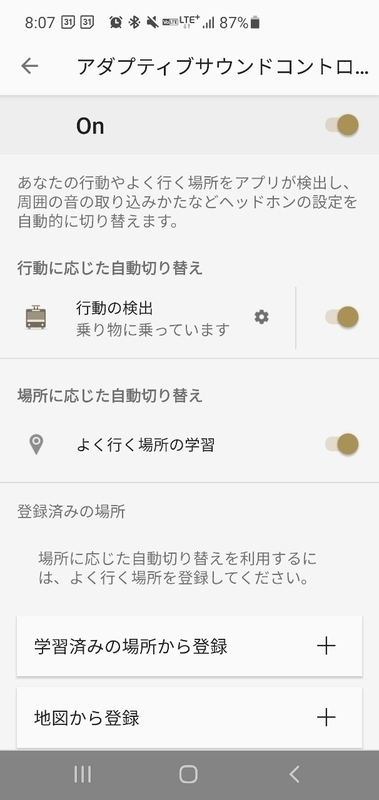 ソニーのHeadphoneアプリと完全ワイヤレスを連携させると、位置情報に合わせて、ノイキャンの性能を変更することが可能です。乗降駅にて外音を取り込む設定にしておけば、音楽に集中していても駅に着いたことがわかる、というTIPSです。