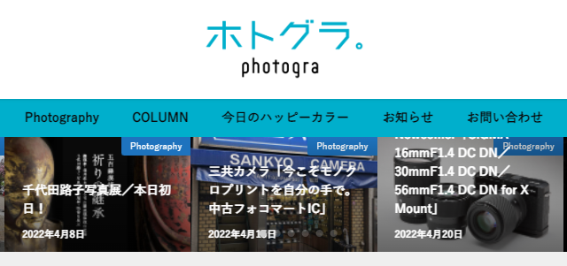 2022-04-22 写真ポータルサイト「ホトグラ。」でカメラ、写真の有益な情報を得る カメラ 写真ポータルサイト「ホトグラ。」がオープンしています。カメラ、写真関連の情報が充実しており、おすすめです。 photogra.jp