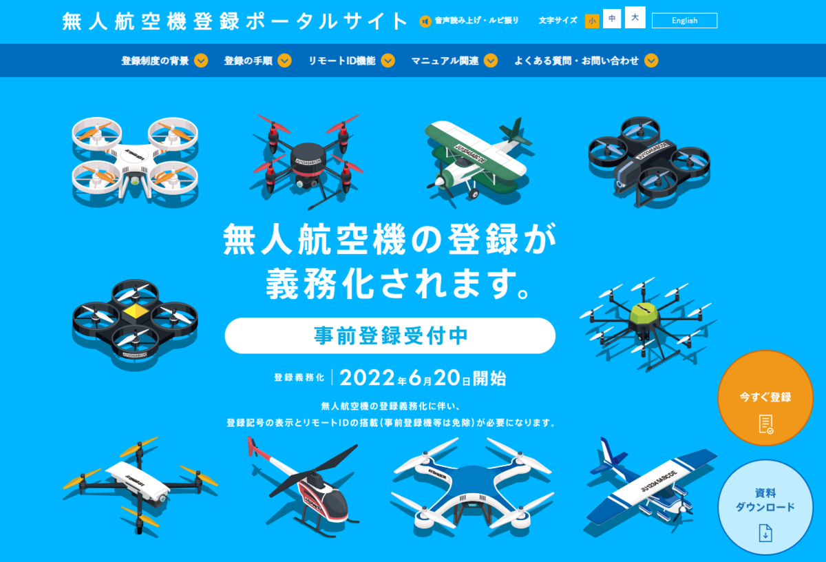 6月20日よりドローン登録が必須になります。また、リモートID非搭載機種は6月20日までに事前登録が必要になります。