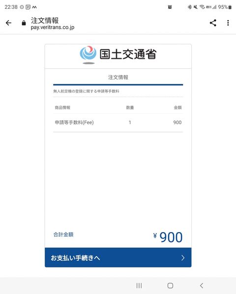 登録後、クレジットカードで登録料を振り込みました。一台あたり900円。