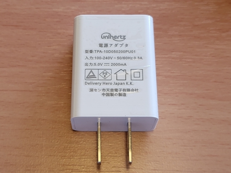 USB充電器は、USB-Cポートではなく、USB-Aポートのタイプ。今時珍しいですね。急速充電に非対応かな?