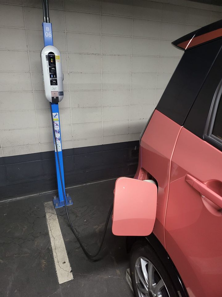 みなとみらい公共駐車場。200V普通充電が45台という最大規模なのに、EV充電スペースがガソリン車で満車状態。アプリで見るとと20台分が空いていると表示されますが、現実はこんな感じです。日産ZEPS3で普通充電が無料なので充電時間の選択最長の7時間に設定。4時間の充電で満充電に復活しました。