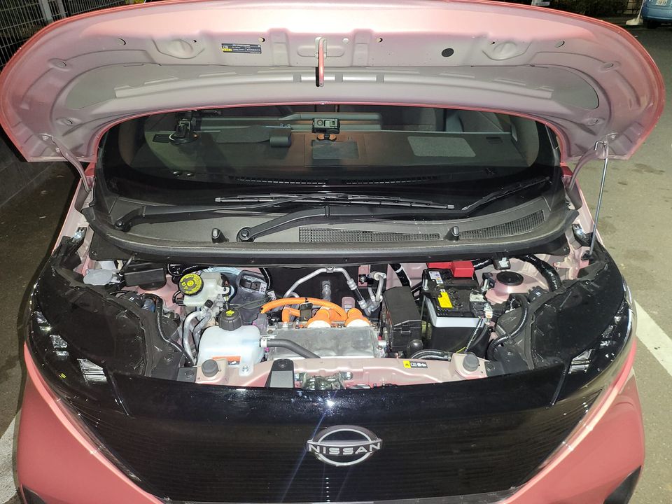 2023-04-06 【日産サクラ】施錠時のアンサーバック音を下げる方法 EV 日産サクラ。施錠時のアンサーバック音が大きいので、ボンネット内のスピーカーに養生テープを貼って、音量を下げました。なお、アンサーバック音はディーラーに持っていけばオフに出来るようです。