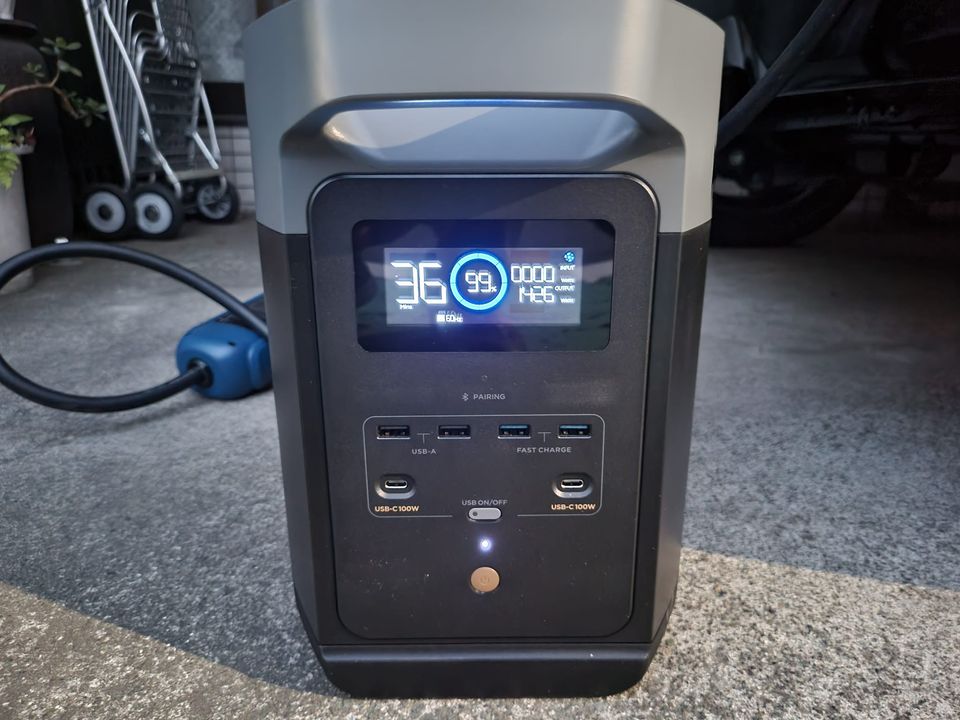 なお、ポータブル電源EcoFlow DELTA1000の1000Whの充電は1200Wで1時間でフル充電可能です。凄い高速充電です。