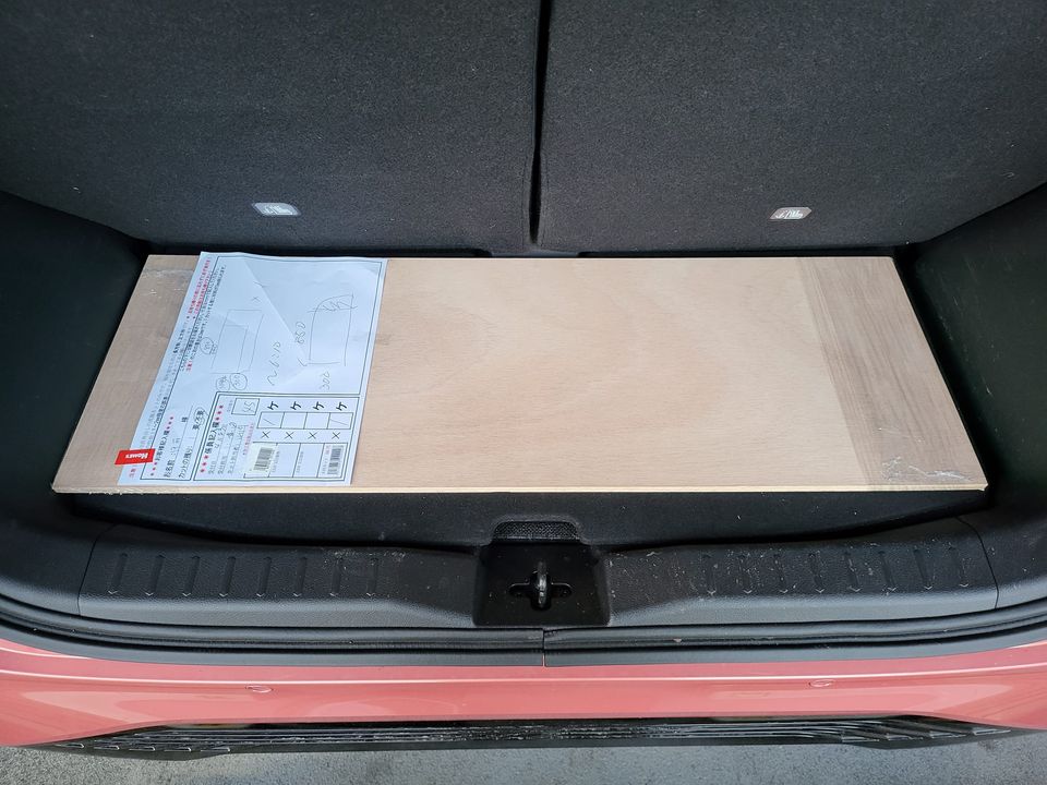 先生に荷室のサイズの板を作ればテーブルにできるとヒントをいただいたので試してみました。