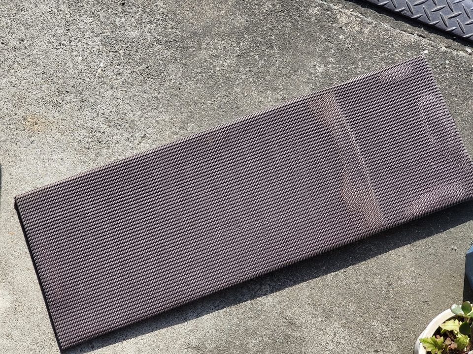 リアゲートテーブルの板にダイソー滑り止めシートを貼ってみました。本当は耐熱シートが良いのですが、とりあえずこれで。