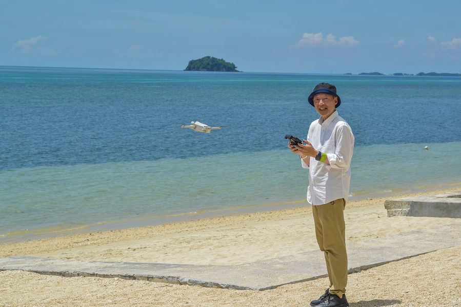 研さんがドローン撮影許可を交渉してくださり、DJI Mini 3 Proで海外初飛行。美しい景色に感動しました。