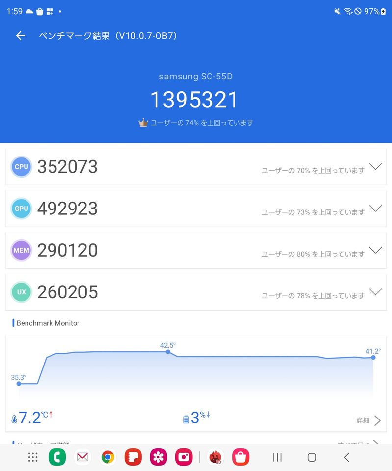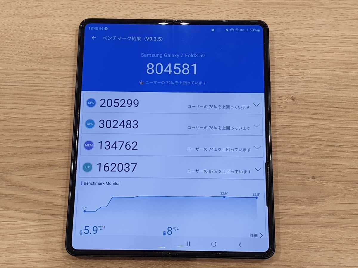 2023-09-12 【Galaxy Z Fold5】Snapdragon 8 Gen 2の超爆速に驚き。Fold3の倍近い速度をマーク Android モバイル Galaxy Z Fold5でベンチマークアプリAntutu Benchmarkを試しました。約140万という、とんでもない速度です。 今まで使っていたGalaxy Z Fold3が80万台で、爆速に感じていたので、超爆速です。 【SIMフリー】Galaxy Z Fold5 5G 256GB 12GB RAM Phantom Black [並行輸入品] Generic Amazon