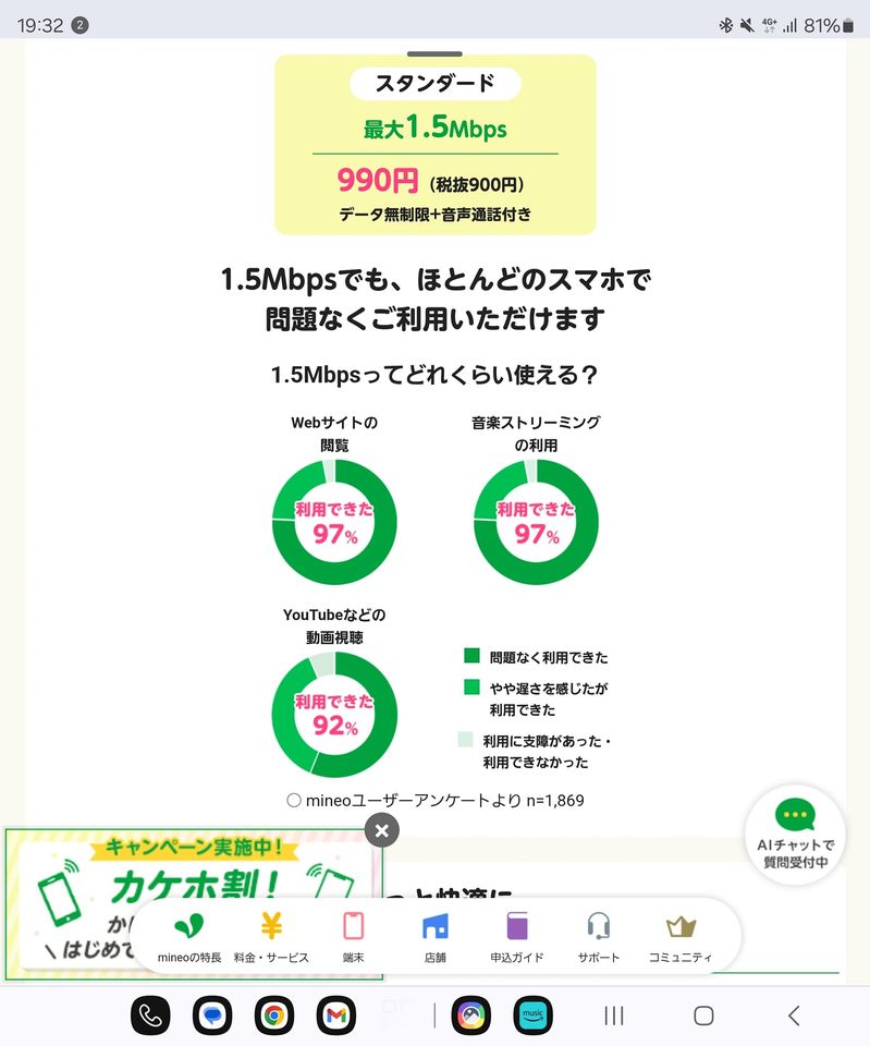Galaxy Z Fold5にeSIMでpovo2.0を使っていますが、もう一つeSIMを追加しました。mineoのマイそく1.5Mbps。使い放題ですが平日12時−13時は32kbpsに制限されます。