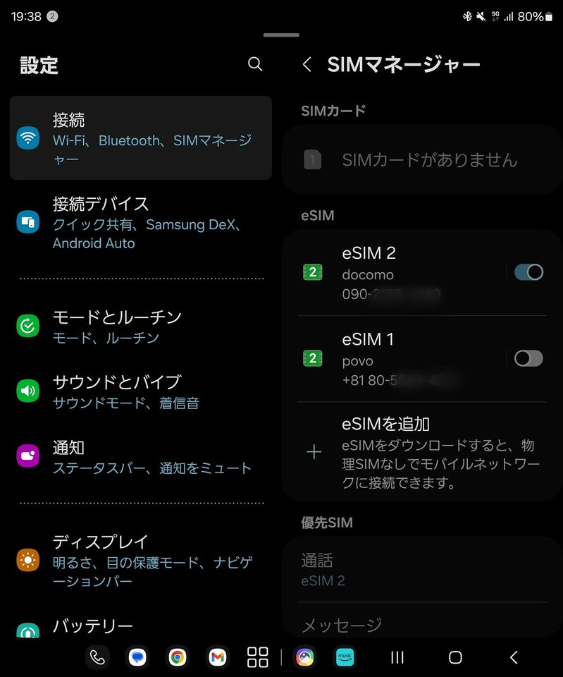 なおGalaxy Z Fold5は物理SIMとeSIMのデュアルSIMなので、eSIMはデュアルで利用ができません。