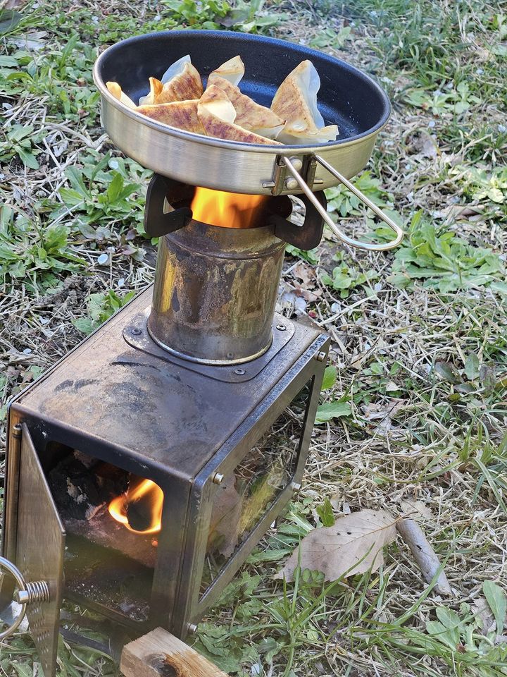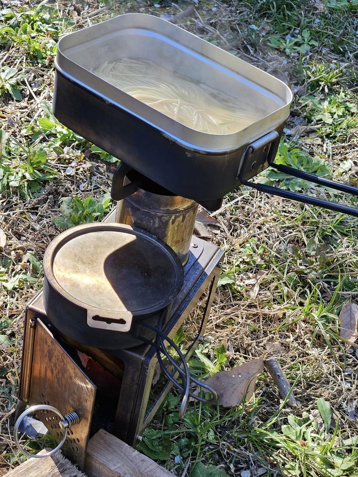 【日産サクラ】薪ストーブでマルタイラーメンと餃子
