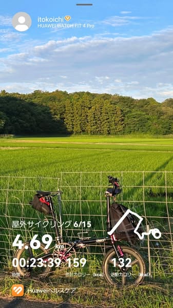 キャンプ場周辺をサイクリング。里山で高低差が激しく、坂の練習になってしまいましたが、止まらずに漕ぎ続けられました。