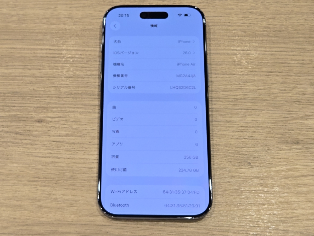 2025-09-27 【iPhone Air】発売日にゲットしました。開封レビュー モバイル iPhone iPhone Airを発売日にゲットしました。 入手の経緯はS-MAXに寄稿しました。 s-max.jp 遅くなりましたが、開封レビューです。 とりあえず薄いです。 デフォルトのホーム画面。 端末情報。 iPhone 16eと比較。パッケージの厚さも違います。 Apple iPhone Air (1 TB):史上最薄のiPhone、最大120HzのProMotionを採用した6.5イ ンチディスプレイ、パワフルなA19 Proチップ、センターフレームフロントカメラ、一 日中使えるバッテリー;スカイブルー Apple(アップル) Amazon