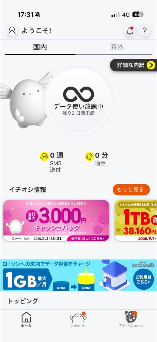 設定完了後、iPhone Airをpovo2.0の週末データ使い放題で運用してみました。快適でした。